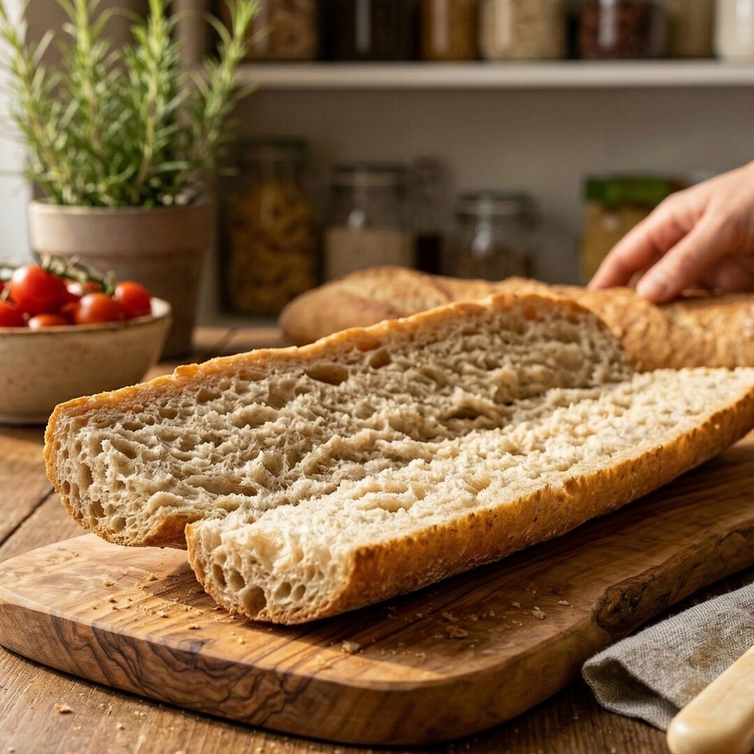 El resultado es un pan con corteza crujiente y miga muy agradable, ideal para acompañar comidas o disfrutar con aceite de oliva.