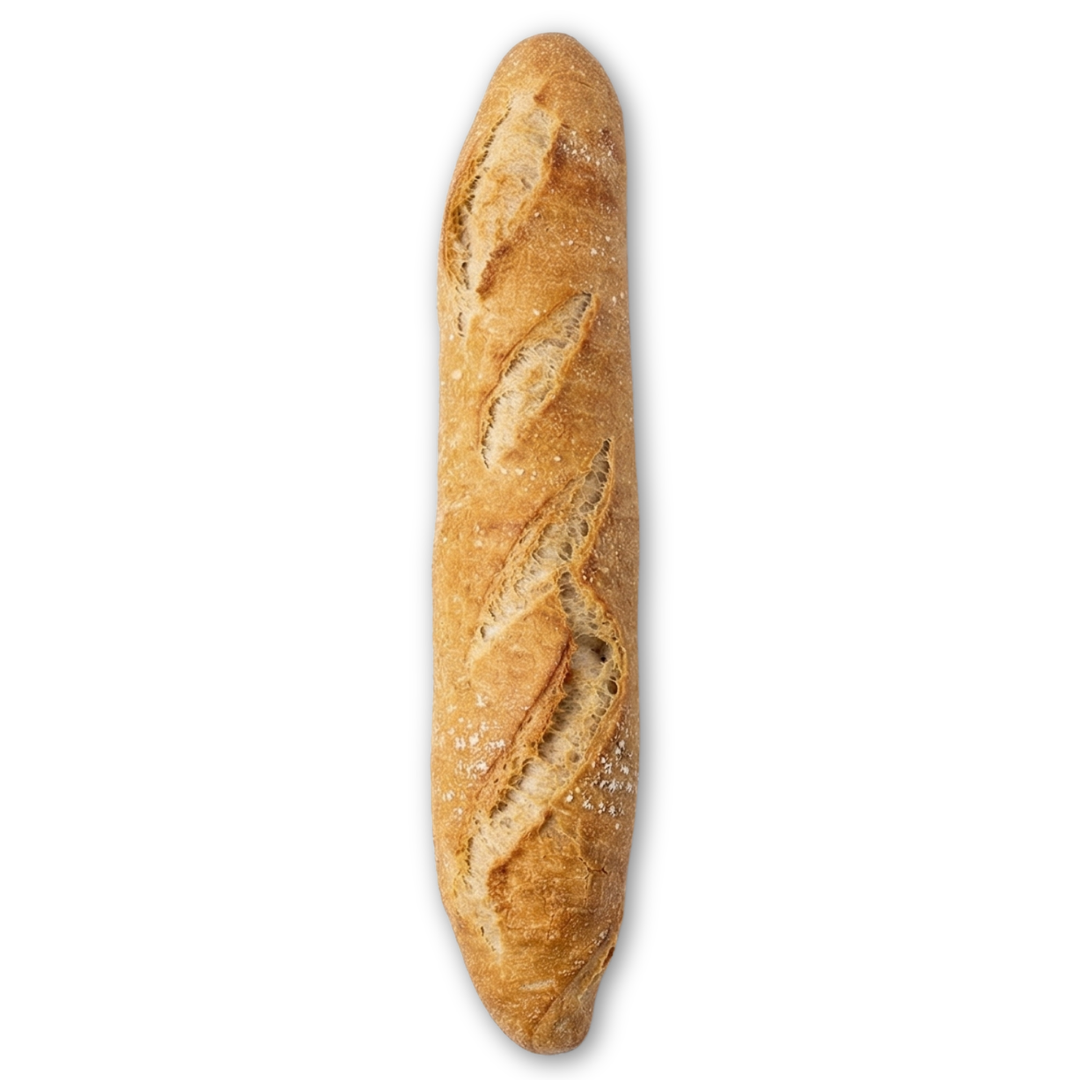 Barra rústica de alta hidratación con fermentación en dos fases, que aporta una miga muy jugosa y corteza crujiente.