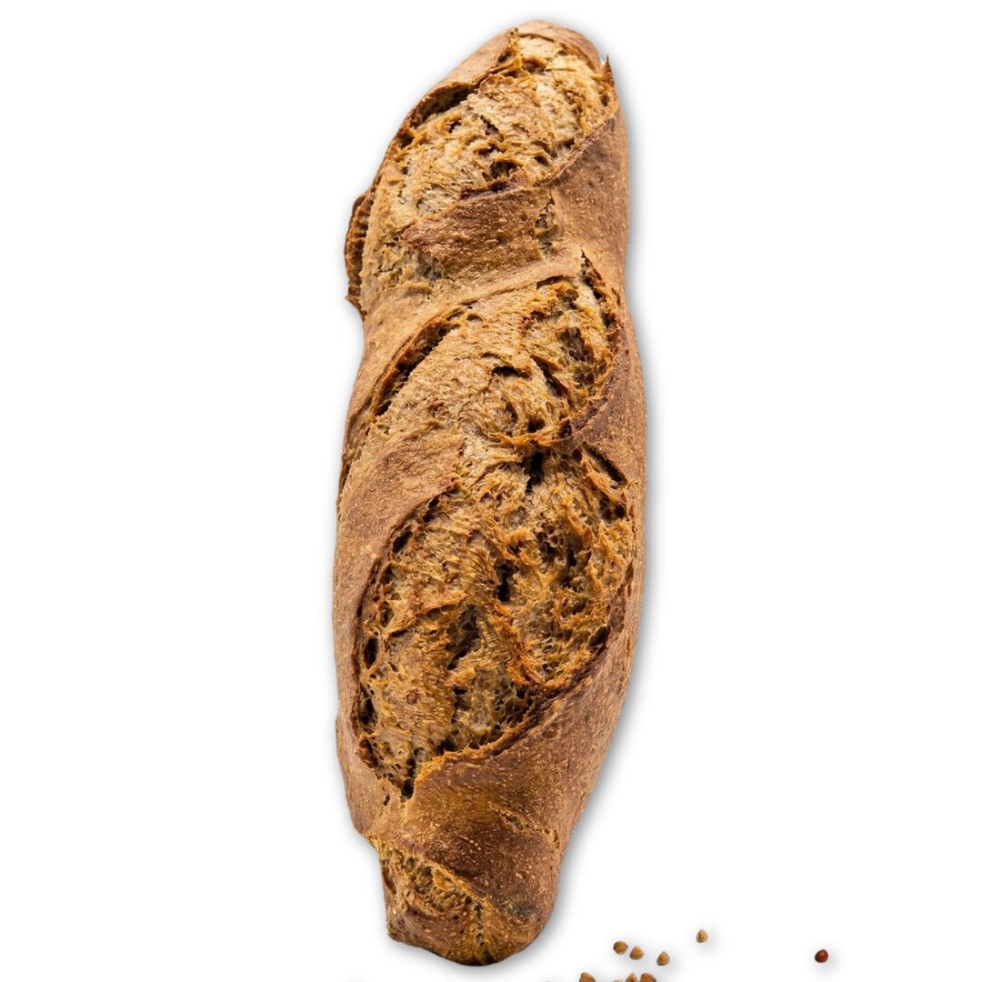 Pan elaborado con trigo sarraceno y espelta, cereales muy apreciados por su sabor y valor nutricional.