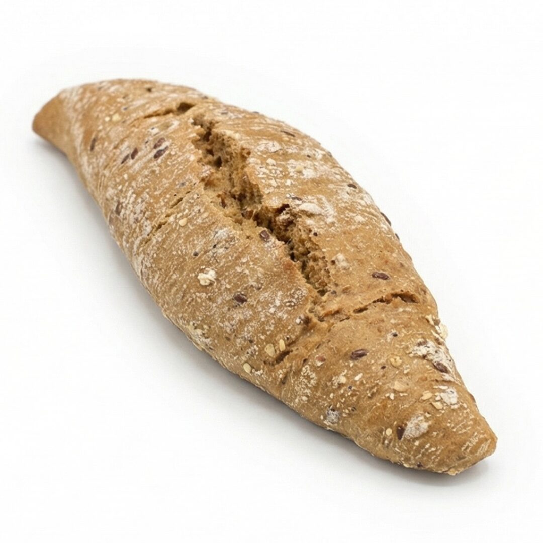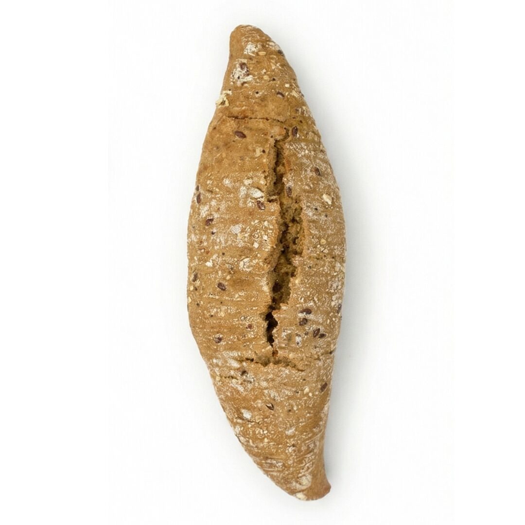 El recubrimiento de avena, sésamo, amapola y mijo aporta un toque crujiente y un sabor más complejo, convirtiéndolo en una opción muy completa para desayunos o bocadillos.