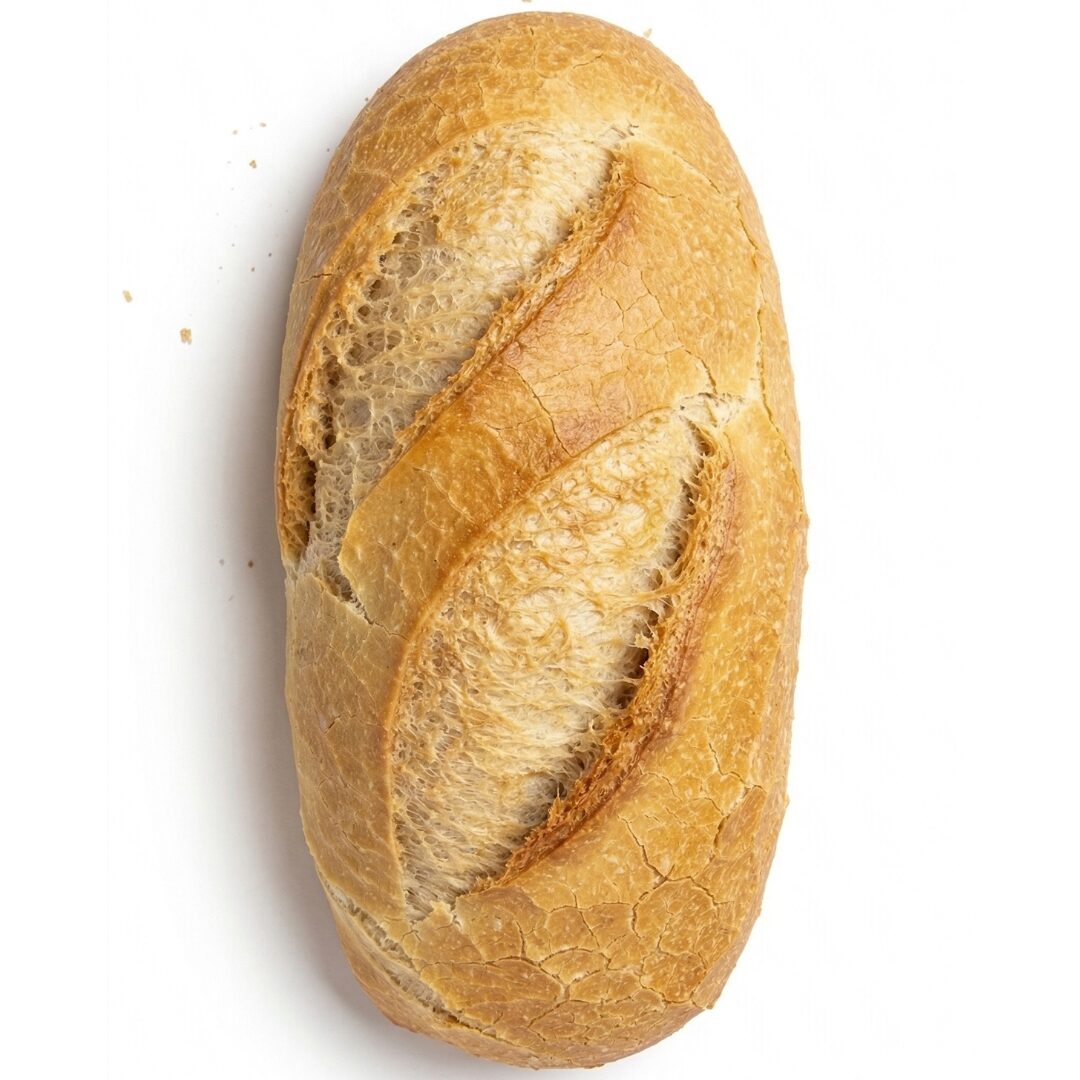 Elaborado con harina de trigo, masa madre y fermentación cuidada, consigue una textura ligera y un sabor equilibrado que combina perfectamente con embutidos, aceite de oliva o tomate.